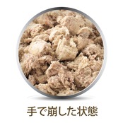 また、一般的なドライフードのように、肉食動物である犬や猫にとって不要な穀類・イモ類・豆類などといった、粘性の高い「つなぎ」や量増しとしての原材料を一切使用していないため、1粒1粒が柔らかく、簡単にほぐせるようになっています。