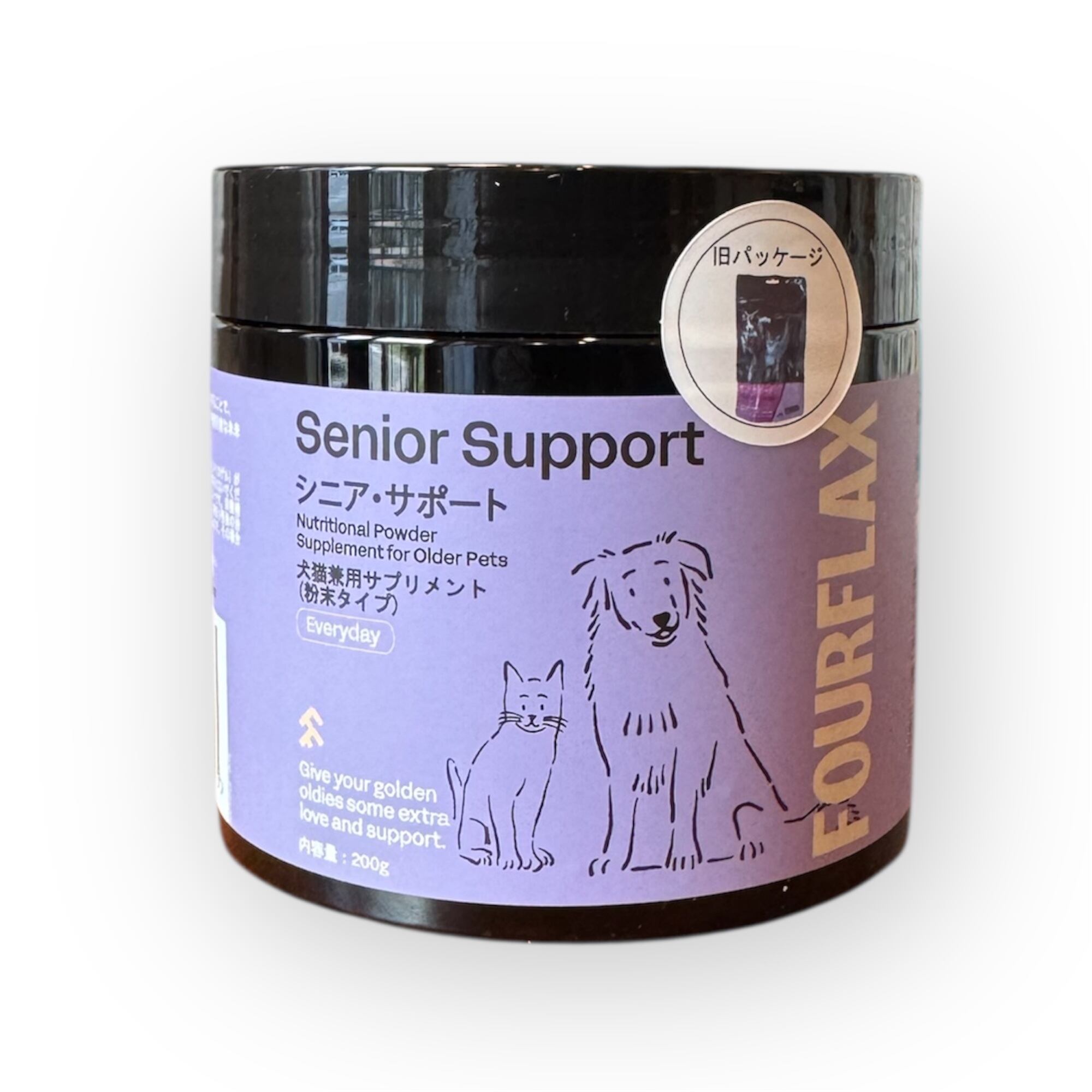 FOURFLAX シニア・サポートは、高齢の犬や猫の栄養サポートのために特別に作られた、毎日与えられるパウダータイプのサプリメントです。年齢を重ねた愛犬・愛猫の生活をサポートするために、最高品質の成分が特別な配合比でブレンドされています。
