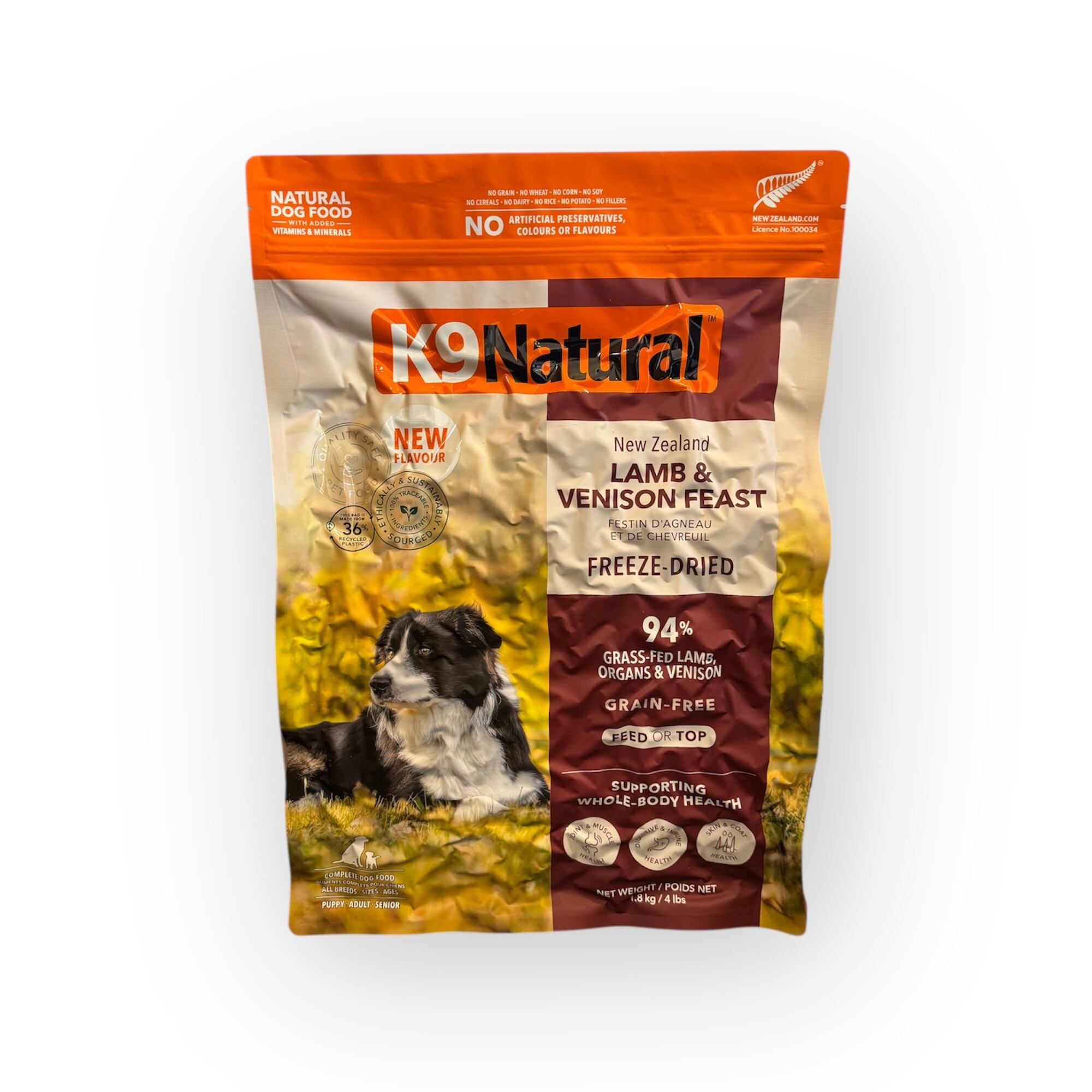 犬の祖先、オオカミが主食としてきた鹿肉を使用した「K9ナチュラル ラム&ベニソン」。高タンパク・低脂肪で、脂肪をエネルギーに変えるL‐カルニチン、脳や目などの神経器官にも必要なEPA・DHA、造血に必要な鉄分、皮膚・被毛に必要な亜鉛、肝臓に必要なビタミンA、代謝に関わるビタミンB群など、イヌ科の動物にとって必要な、貴重な栄養が詰まっています。