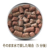 K9ナチュラルは、基本的な与え方として、本来の食事に近づけるために、生食の水分値に戻してから与えていただくフードですので、粉状になっているものはそのまま、粒状のものはくずしてから、水かぬるま湯(37℃以下)を加えると短い時間で戻ります。