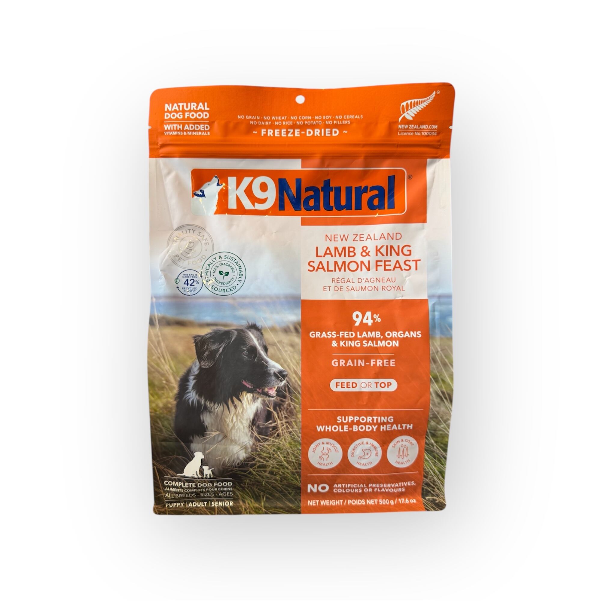 子羊肉、鮭、グリーントライプ(子羊)、肺(子羊)、肝臓(子羊)、腎臓(子羊)、心臓(子羊)、フラックスシードフレーク、にんじん、ニュージーランド緑イ貝、骨(子羊)、かぼちゃ、ひまわり油、ブロッコリー、乾燥昆布、リン酸二カリウム、ビタミンE、塩化ナトリウム、ミネラル類(プロティネイト亜鉛、プロティネイト鉄、酸化マグネシウム、セレン酵母、プロティネイト銅、プロティネイトマンガン)、ビタミン類(ビタミンB1、ベータカロチン、葉酸、ビタミンD3)