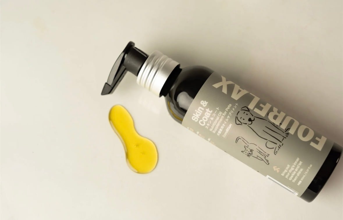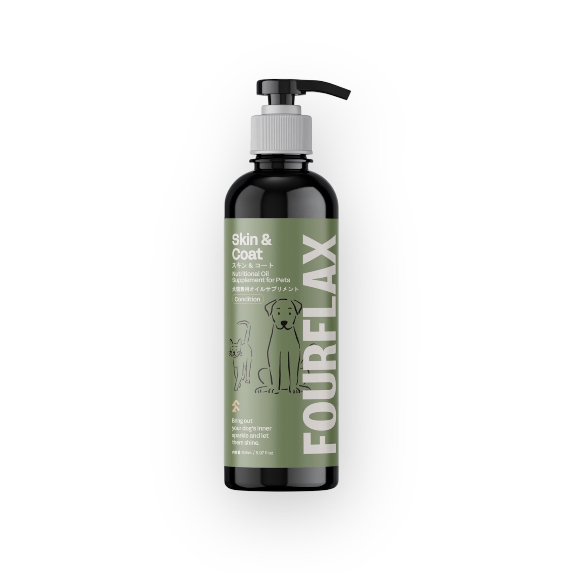 フォーフラックス「スキン&コート」は、犬や猫の皮膚や被毛の健康を保つためにブレンドされたサプリメントオイルです。